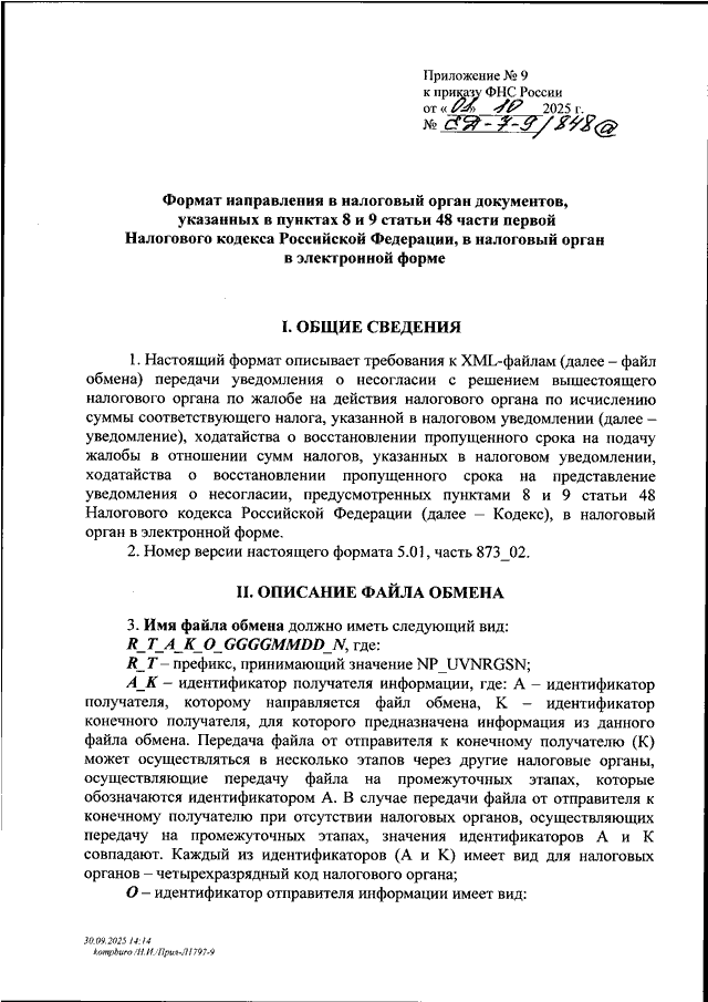 ПРИКАЗ ФНС РФ от 01.10.2025 N ЕД-7-9/848@