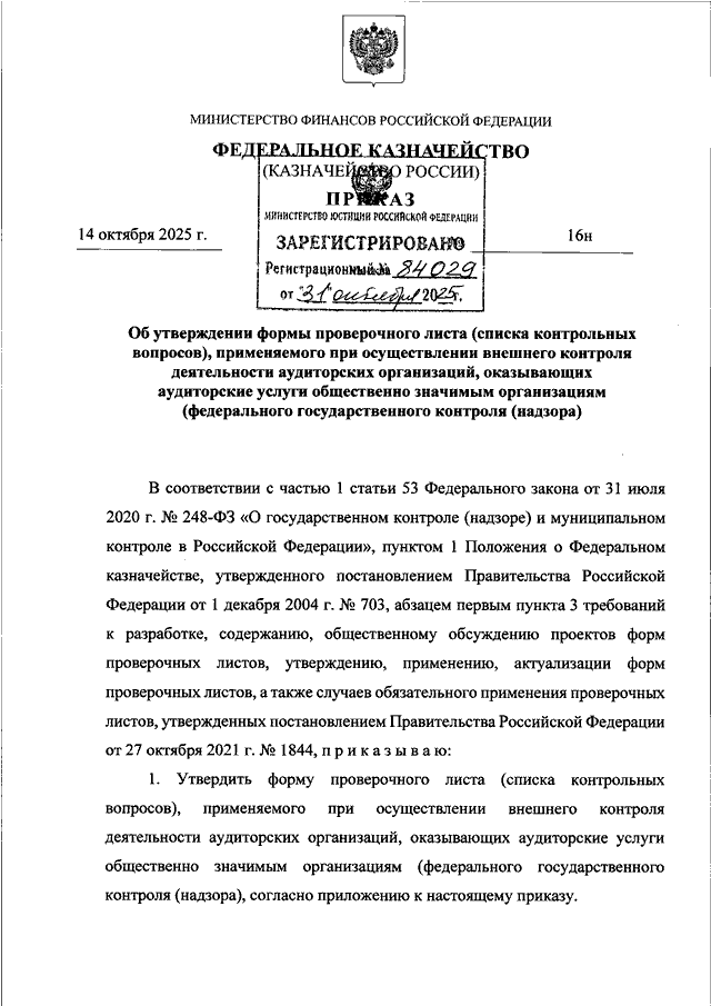 ПРИКАЗ Федерального казначейства от 14.10.2025 N 16н