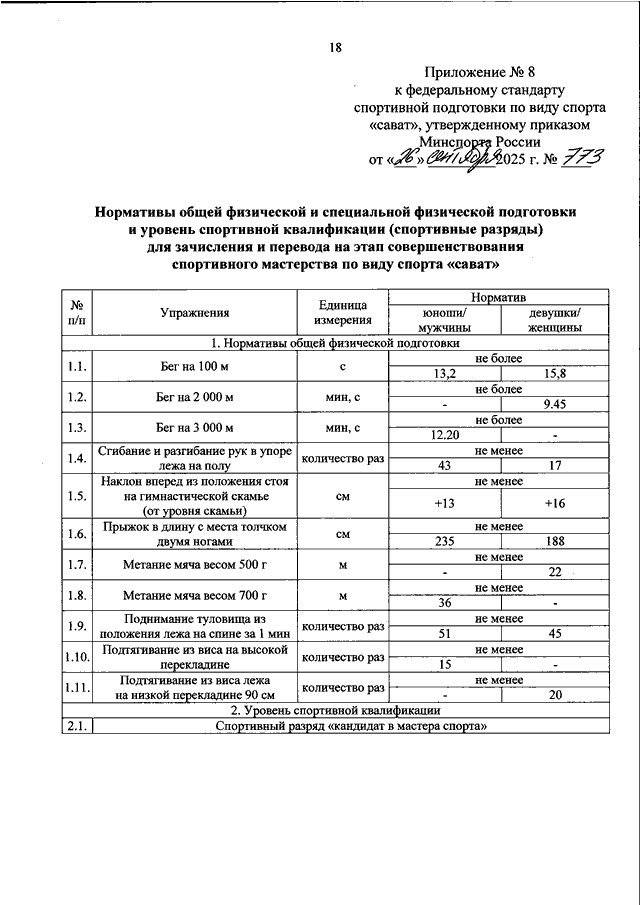 ПРИКАЗ Минспорта РФ от 26.09.2025 N 773