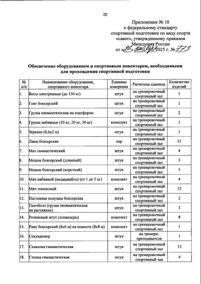ПРИКАЗ Минспорта РФ от 26.09.2025 N 773