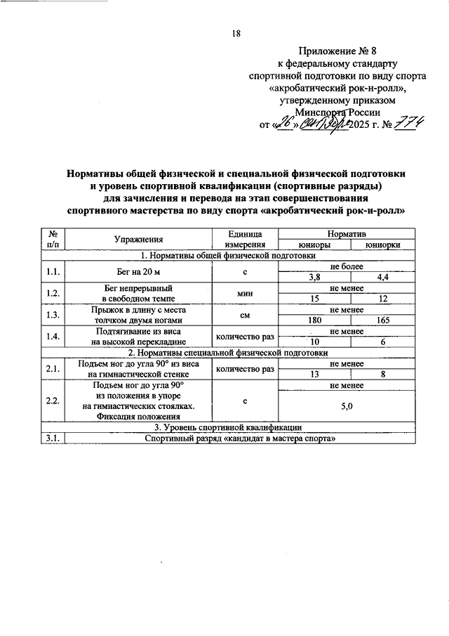 ПРИКАЗ Минспорта РФ от 26.09.2025 N 774