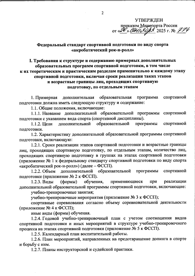 ПРИКАЗ Минспорта РФ от 26.09.2025 N 774