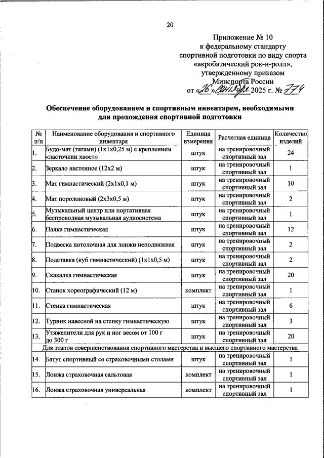 ПРИКАЗ Минспорта РФ от 26.09.2025 N 774
