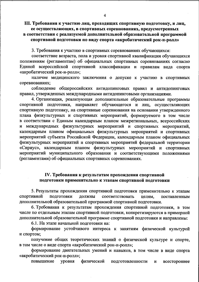 "ОБ УТВЕРЖДЕНИИ ФЕДЕРАЛЬНОГО СТАНДАРТА СПОРТИВНОЙ ПОДГОТОВКИ ПО ВИДУ СПОРТА "АКРОБАТИЧЕСКИЙ РОК-Н-РОЛЛ"