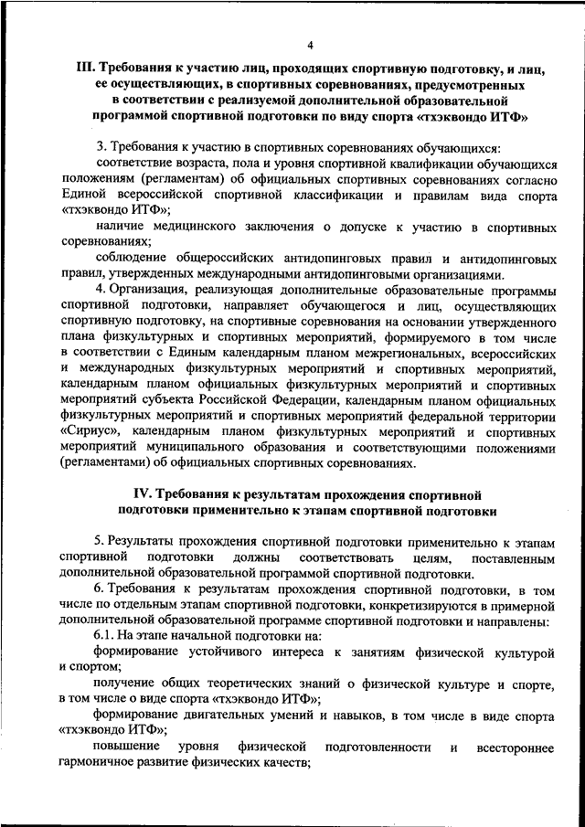 "ОБ УТВЕРЖДЕНИИ ФЕДЕРАЛЬНОГО СТАНДАРТА СПОРТИВНОЙ ПОДГОТОВКИ ПО ВИДУ СПОРТА "ТХЭКВОНДО ИТФ"