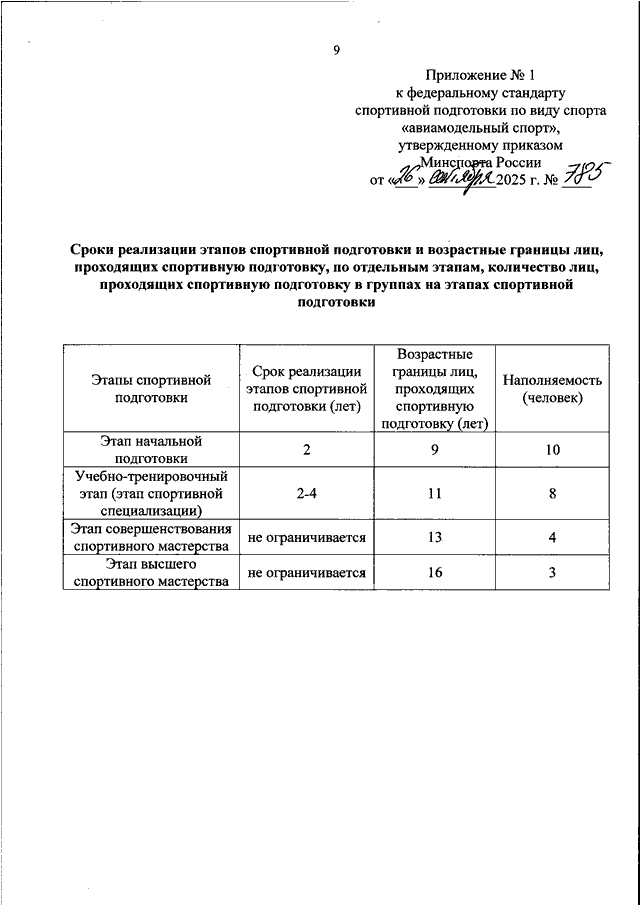 ПРИКАЗ Минспорта РФ от 26.09.2025 N 785