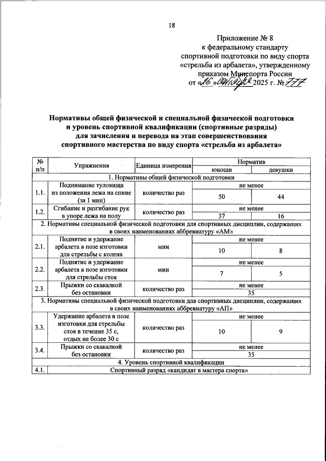 ПРИКАЗ Минспорта РФ от 26.09.2025 N 777