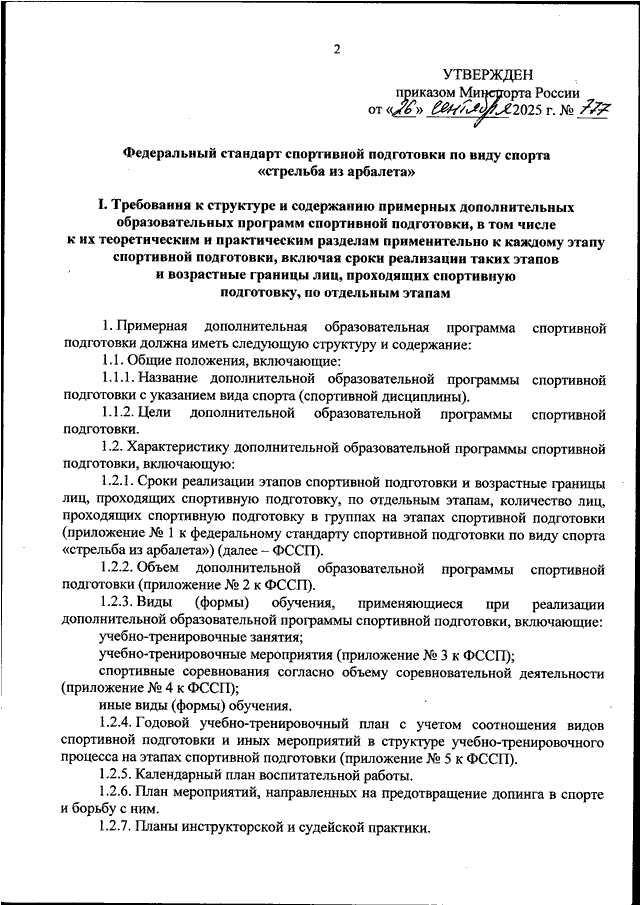 ПРИКАЗ Минспорта РФ от 26.09.2025 N 777