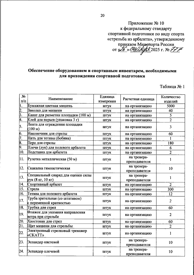 ПРИКАЗ Минспорта РФ от 26.09.2025 N 777