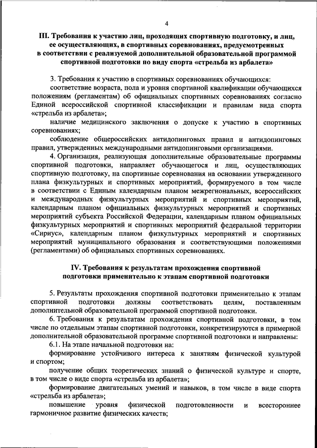 "ОБ УТВЕРЖДЕНИИ ФЕДЕРАЛЬНОГО СТАНДАРТА СПОРТИВНОЙ ПОДГОТОВКИ ПО ВИДУ СПОРТА "СТРЕЛЬБА ИЗ АРБАЛЕТА"