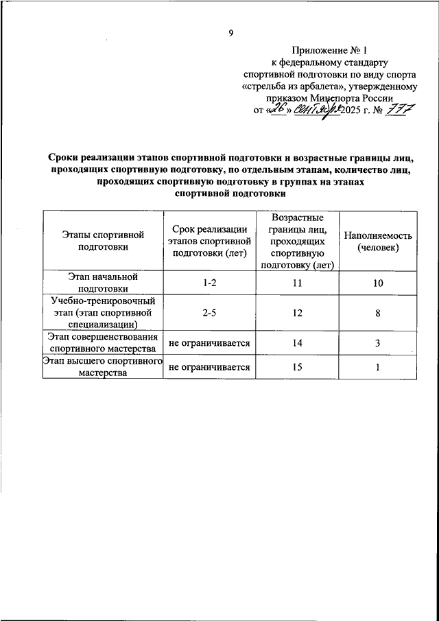 ПРИКАЗ Минспорта РФ от 26.09.2025 N 777