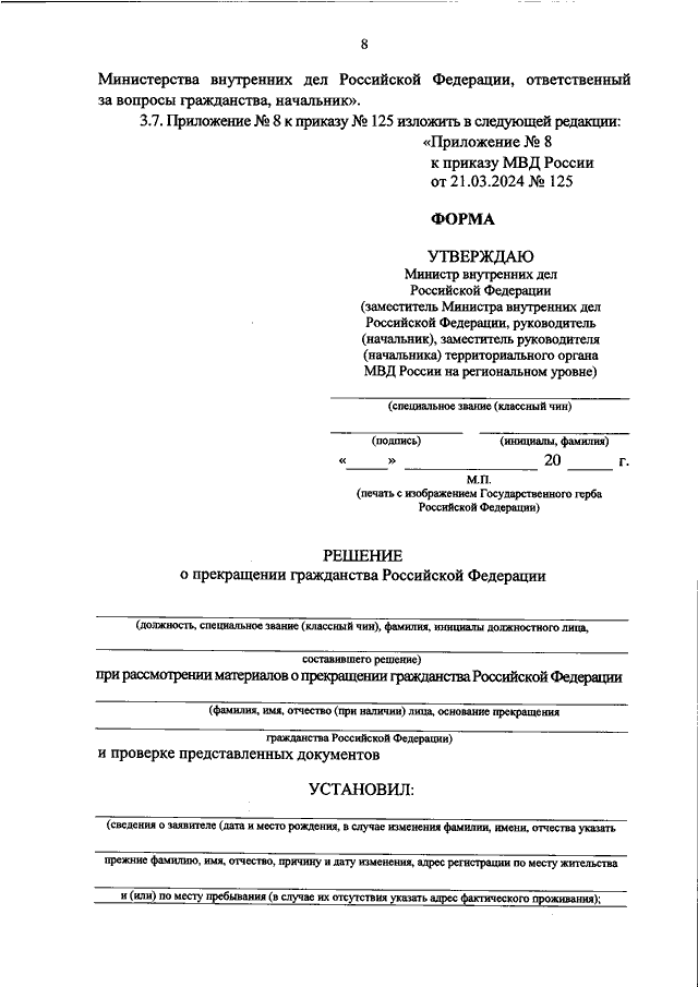 "О ВНЕСЕНИИ ИЗМЕНЕНИЙ В НОРМАТИВНЫЕ ПРАВОВЫЕ АКТЫ МВД РОССИИ ПО ВОПРОСАМ РЕАЛИЗАЦИИ ЗАКОНОДАТЕЛЬСТВА О ГРАЖДАНСТВЕ РОССИЙСКОЙ ФЕДЕРАЦИИ"