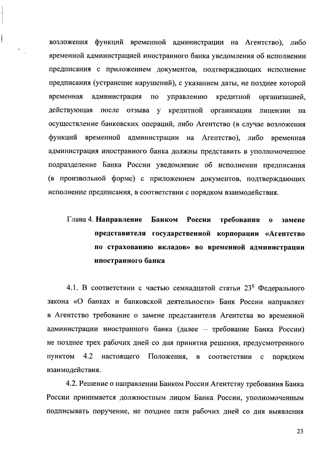 "О СЛУЧАЯХ И ПОРЯДКЕ ПРОВЕДЕНИЯ БАНКОМ РОССИИ ПРОВЕРОК ДЕЯТЕЛЬНОСТИ ВРЕМЕННОЙ АДМИНИСТРАЦИИ ПО УПРАВЛЕНИЮ КРЕДИТНОЙ ОРГАНИЗАЦИЕЙ, ВРЕМЕННОЙ АДМИНИСТРАЦИИ ИНОСТРАННОГО БАНКА, ВРЕМЕННОЙ АДМИНИСТРАЦИИ СТРАХОВОЙ ОРГАНИЗАЦИИ, ВРЕМЕННОЙ АДМИНИСТРАЦИИ ОБЩЕСТВА ВЗАИМНОГО СТРАХОВАНИЯ, ВРЕМЕННОЙ АДМИНИСТРАЦИИ ИНОСТРАННОЙ СТРАХОВОЙ ОРГАНИЗАЦИИ, ВРЕМЕННОЙ АДМИНИСТРАЦИИ НЕГОСУДАРСТВЕННОГО ПЕНСИОННОГО ФОНДА, ДЕЙСТВУЮЩИХ ПОСЛЕ ОТЗЫВА (АННУЛИРОВАНИЯ) ЛИЦЕНЗИИ, И НАПРАВЛЕНИЯ БАНКОМ РОССИИ ПРЕДПИСАНИЯ ОБ УСТРАНЕНИИ НАРУШЕНИЙ, ВЫЯВЛЕННЫХ БАНКОМ РОССИИ В ХОДЕ ПРОВЕРКИ ДЕЯТЕЛЬНОСТИ ВРЕМЕННОЙ АДМИНИСТРАЦИИ ПО УПРАВЛЕНИЮ КРЕДИТНОЙ ОРГАНИЗАЦИЕЙ, ВРЕМЕННОЙ АДМИНИСТРАЦИИ ИНОСТРАННОГО БАНКА, ВРЕМЕННОЙ АДМИНИСТРАЦИИ СТРАХОВОЙ ОРГАНИЗАЦИИ, ВРЕМЕННОЙ АДМИНИСТРАЦИИ ОБЩЕСТВА ВЗАИМНОГО СТРАХОВАНИЯ, ВРЕМЕННОЙ АДМИНИСТРАЦИИ НЕГОСУДАРСТВЕННОГО ПЕНСИОННОГО ФОНДА, ДЕЙСТВУЮЩИХ ПОСЛЕ ОТЗЫВА (АННУЛИРОВАНИЯ) ЛИЦЕНЗИИ, А ТАКЖЕ О ПОРЯДКЕ НАПРАВЛЕНИЯ БАНКОМ РОССИИ ТРЕБОВАНИЯ О ЗАМЕНЕ ПРЕДСТАВИТЕЛЯ ГОСУДАРСТВЕННОЙ КОРПОРАЦИИ "АГЕНТСТВО ПО СТРАХОВАНИЮ ВКЛАДОВ" ВО ВРЕМЕННОЙ АДМИНИСТРАЦИИ ИНОСТРАННОГО БАНКА"