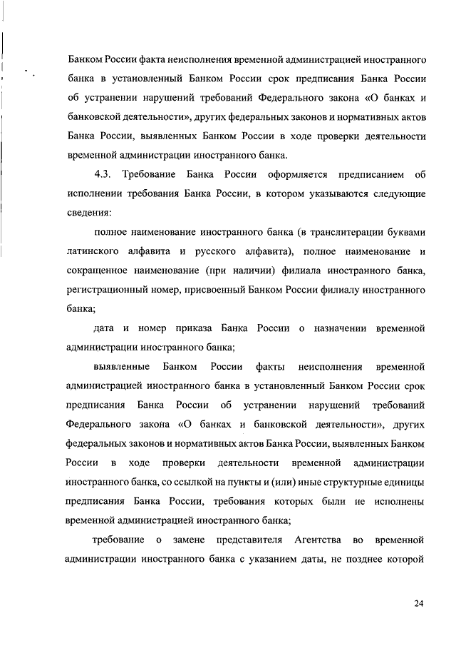 "О СЛУЧАЯХ И ПОРЯДКЕ ПРОВЕДЕНИЯ БАНКОМ РОССИИ ПРОВЕРОК ДЕЯТЕЛЬНОСТИ ВРЕМЕННОЙ АДМИНИСТРАЦИИ ПО УПРАВЛЕНИЮ КРЕДИТНОЙ ОРГАНИЗАЦИЕЙ, ВРЕМЕННОЙ АДМИНИСТРАЦИИ ИНОСТРАННОГО БАНКА, ВРЕМЕННОЙ АДМИНИСТРАЦИИ СТРАХОВОЙ ОРГАНИЗАЦИИ, ВРЕМЕННОЙ АДМИНИСТРАЦИИ ОБЩЕСТВА ВЗАИМНОГО СТРАХОВАНИЯ, ВРЕМЕННОЙ АДМИНИСТРАЦИИ ИНОСТРАННОЙ СТРАХОВОЙ ОРГАНИЗАЦИИ, ВРЕМЕННОЙ АДМИНИСТРАЦИИ НЕГОСУДАРСТВЕННОГО ПЕНСИОННОГО ФОНДА, ДЕЙСТВУЮЩИХ ПОСЛЕ ОТЗЫВА (АННУЛИРОВАНИЯ) ЛИЦЕНЗИИ, И НАПРАВЛЕНИЯ БАНКОМ РОССИИ ПРЕДПИСАНИЯ ОБ УСТРАНЕНИИ НАРУШЕНИЙ, ВЫЯВЛЕННЫХ БАНКОМ РОССИИ В ХОДЕ ПРОВЕРКИ ДЕЯТЕЛЬНОСТИ ВРЕМЕННОЙ АДМИНИСТРАЦИИ ПО УПРАВЛЕНИЮ КРЕДИТНОЙ ОРГАНИЗАЦИЕЙ, ВРЕМЕННОЙ АДМИНИСТРАЦИИ ИНОСТРАННОГО БАНКА, ВРЕМЕННОЙ АДМИНИСТРАЦИИ СТРАХОВОЙ ОРГАНИЗАЦИИ, ВРЕМЕННОЙ АДМИНИСТРАЦИИ ОБЩЕСТВА ВЗАИМНОГО СТРАХОВАНИЯ, ВРЕМЕННОЙ АДМИНИСТРАЦИИ НЕГОСУДАРСТВЕННОГО ПЕНСИОННОГО ФОНДА, ДЕЙСТВУЮЩИХ ПОСЛЕ ОТЗЫВА (АННУЛИРОВАНИЯ) ЛИЦЕНЗИИ, А ТАКЖЕ О ПОРЯДКЕ НАПРАВЛЕНИЯ БАНКОМ РОССИИ ТРЕБОВАНИЯ О ЗАМЕНЕ ПРЕДСТАВИТЕЛЯ ГОСУДАРСТВЕННОЙ КОРПОРАЦИИ "АГЕНТСТВО ПО СТРАХОВАНИЮ ВКЛАДОВ" ВО ВРЕМЕННОЙ АДМИНИСТРАЦИИ ИНОСТРАННОГО БАНКА"