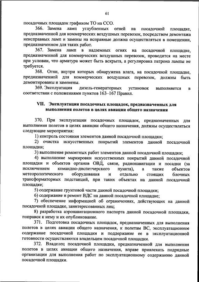 "ОБ УТВЕРЖДЕНИИ ФЕДЕРАЛЬНЫХ АВИАЦИОННЫХ ПРАВИЛ ПОПРАВИЛА ЭКСПЛУАТАЦИИ АЭРОДРОМОВ, ВЕРТОДРОМОВ И ПОСАДОЧНЫХ ПЛОЩАДОК, ПРЕДНАЗНАЧЕННЫХ ДЛЯ ВЗЛЕТА, ПОСАДКИ, РУЛЕНИЯ И СТОЯНКИ ГРАЖДАНСКИХ ВОЗДУШНЫХ СУДОВ, В ЗАВИСИМОСТИ ОТ ВИДОВ ПОЛЕТОВ ВОЗДУШНЫХ СУДОВ И ХАРАКТЕРИСТИК ОБСЛУЖИВАЕМЫХ ВОЗДУШНЫХ СУДОВ"