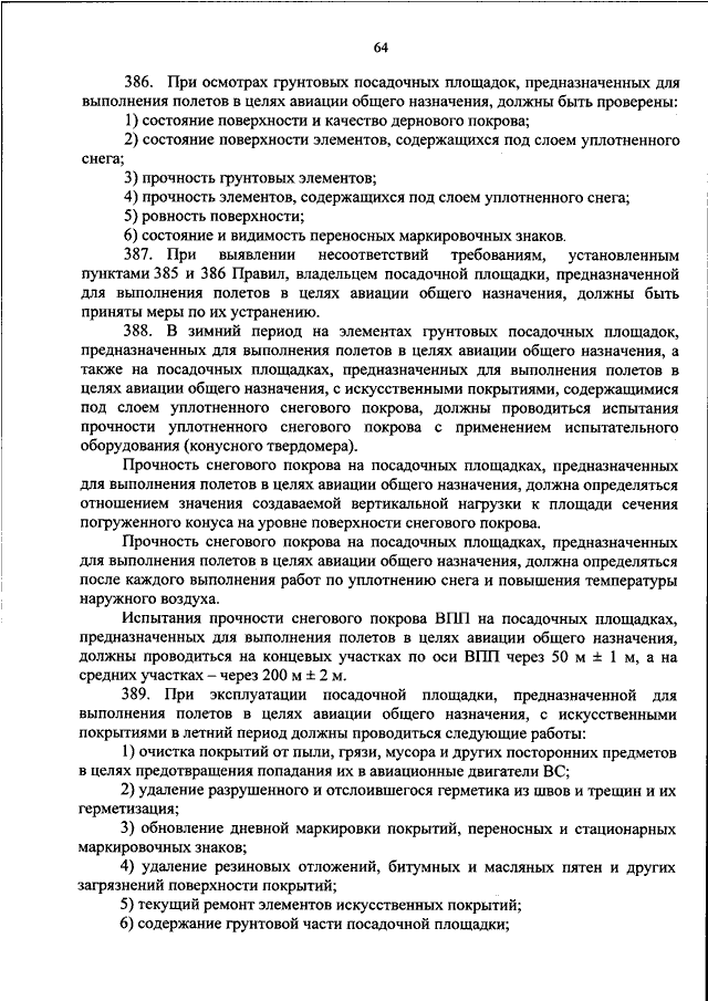 "ОБ УТВЕРЖДЕНИИ ФЕДЕРАЛЬНЫХ АВИАЦИОННЫХ ПРАВИЛ ПОПРАВИЛА ЭКСПЛУАТАЦИИ АЭРОДРОМОВ, ВЕРТОДРОМОВ И ПОСАДОЧНЫХ ПЛОЩАДОК, ПРЕДНАЗНАЧЕННЫХ ДЛЯ ВЗЛЕТА, ПОСАДКИ, РУЛЕНИЯ И СТОЯНКИ ГРАЖДАНСКИХ ВОЗДУШНЫХ СУДОВ, В ЗАВИСИМОСТИ ОТ ВИДОВ ПОЛЕТОВ ВОЗДУШНЫХ СУДОВ И ХАРАКТЕРИСТИК ОБСЛУЖИВАЕМЫХ ВОЗДУШНЫХ СУДОВ"