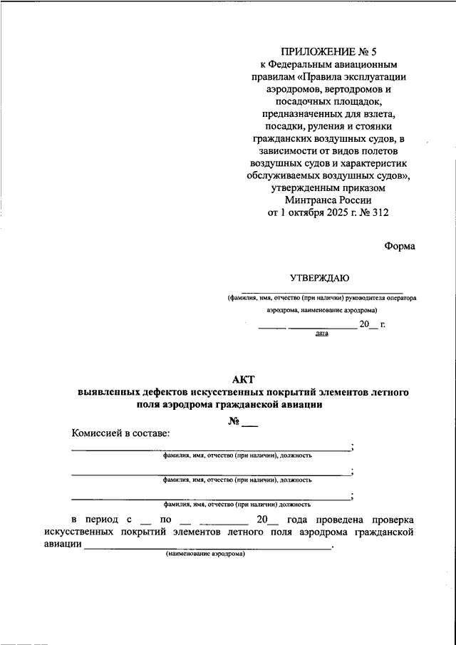 ПРИКАЗ Минтранса РФ от 01.10.2025 N 312