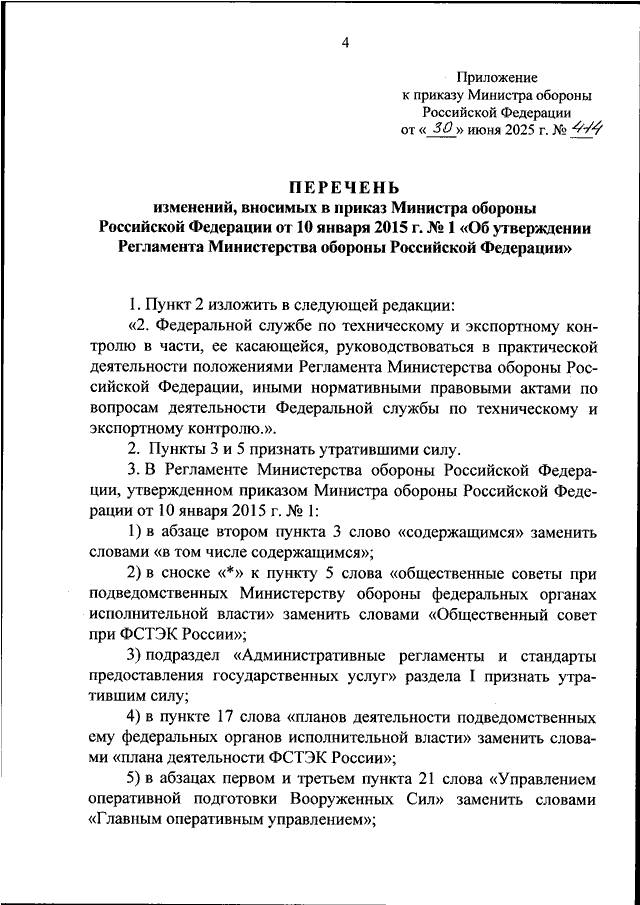 ПРИКАЗ Минобороны РФ от 30.06.2025 N 414