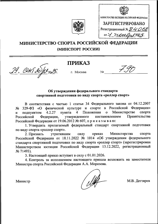 ПРИКАЗ Минспорта РФ от 29.09.2025 N 790