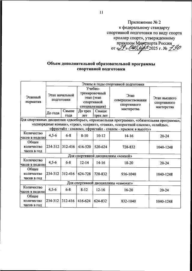 ПРИКАЗ Минспорта РФ от 29.09.2025 N 790