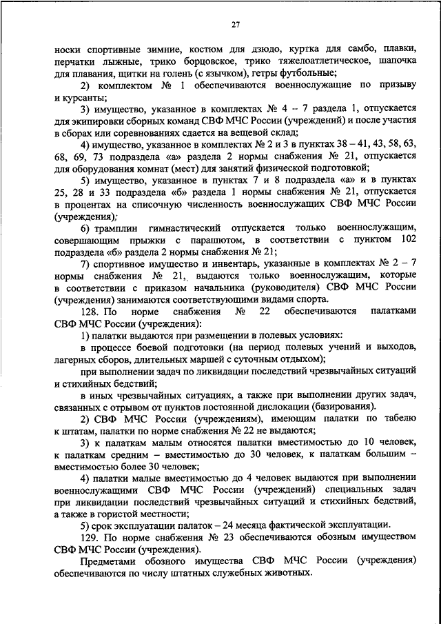 "ОБ ОБЕСПЕЧЕНИИ ВЕЩЕВЫМ ИМУЩЕСТВОМ ВОЕННОСЛУЖАЩИХ СПАСАТЕЛЬНЫХ ВОИНСКИХ ФОРМИРОВАНИЙ МЧС РОССИИ И УЧРЕЖДЕНИЙ, НАХОДЯЩИХСЯ В ВЕДЕНИИ МЧС РОССИИ"