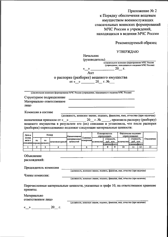 "ОБ ОБЕСПЕЧЕНИИ ВЕЩЕВЫМ ИМУЩЕСТВОМ ВОЕННОСЛУЖАЩИХ СПАСАТЕЛЬНЫХ ВОИНСКИХ ФОРМИРОВАНИЙ МЧС РОССИИ И УЧРЕЖДЕНИЙ, НАХОДЯЩИХСЯ В ВЕДЕНИИ МЧС РОССИИ"