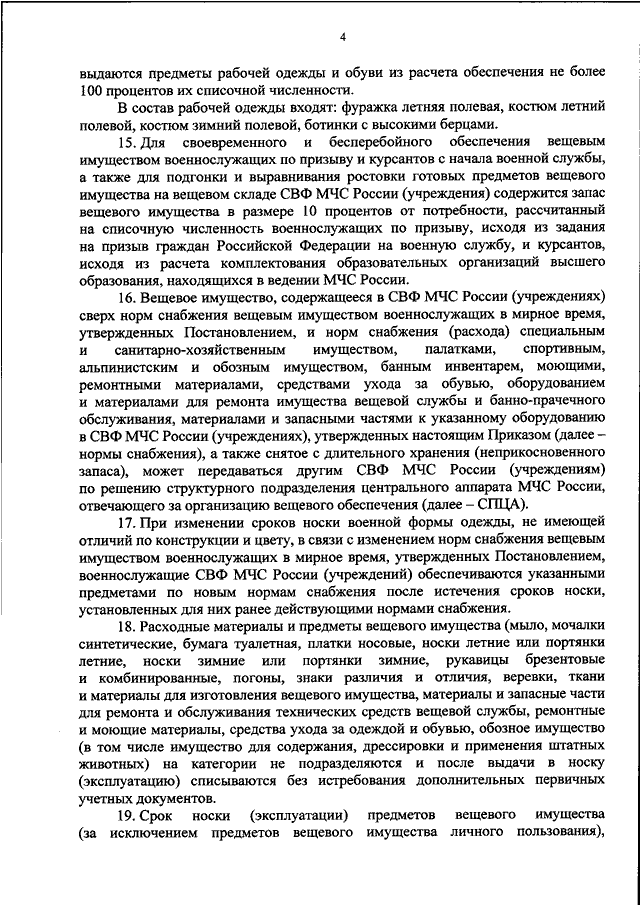 "ОБ ОБЕСПЕЧЕНИИ ВЕЩЕВЫМ ИМУЩЕСТВОМ ВОЕННОСЛУЖАЩИХ СПАСАТЕЛЬНЫХ ВОИНСКИХ ФОРМИРОВАНИЙ МЧС РОССИИ И УЧРЕЖДЕНИЙ, НАХОДЯЩИХСЯ В ВЕДЕНИИ МЧС РОССИИ"