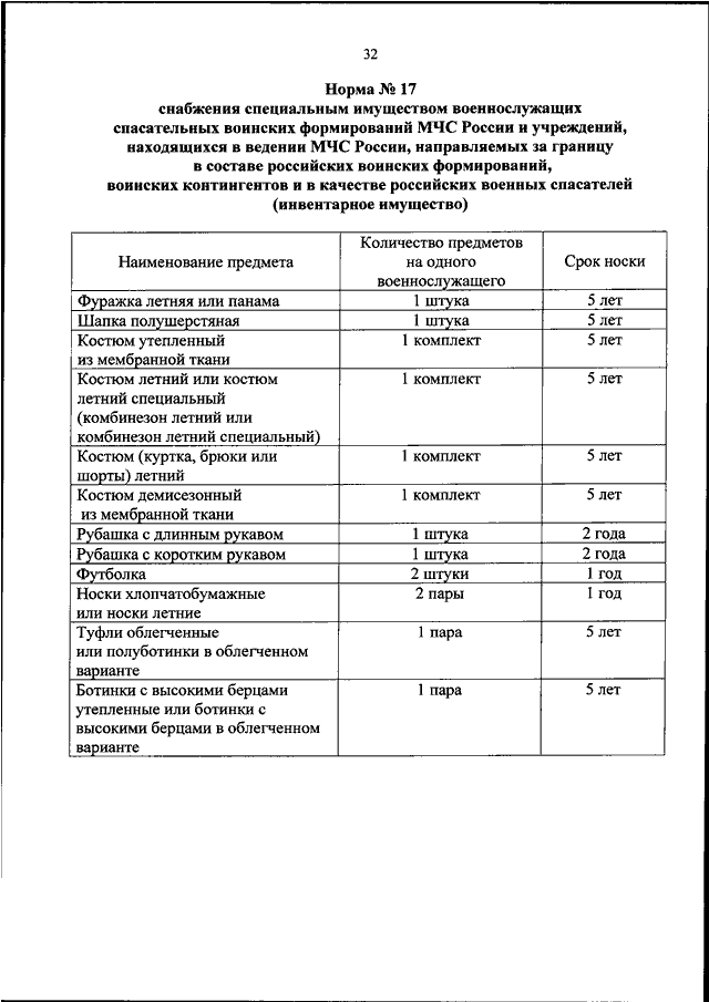 "ОБ ОБЕСПЕЧЕНИИ ВЕЩЕВЫМ ИМУЩЕСТВОМ ВОЕННОСЛУЖАЩИХ СПАСАТЕЛЬНЫХ ВОИНСКИХ ФОРМИРОВАНИЙ МЧС РОССИИ И УЧРЕЖДЕНИЙ, НАХОДЯЩИХСЯ В ВЕДЕНИИ МЧС РОССИИ"