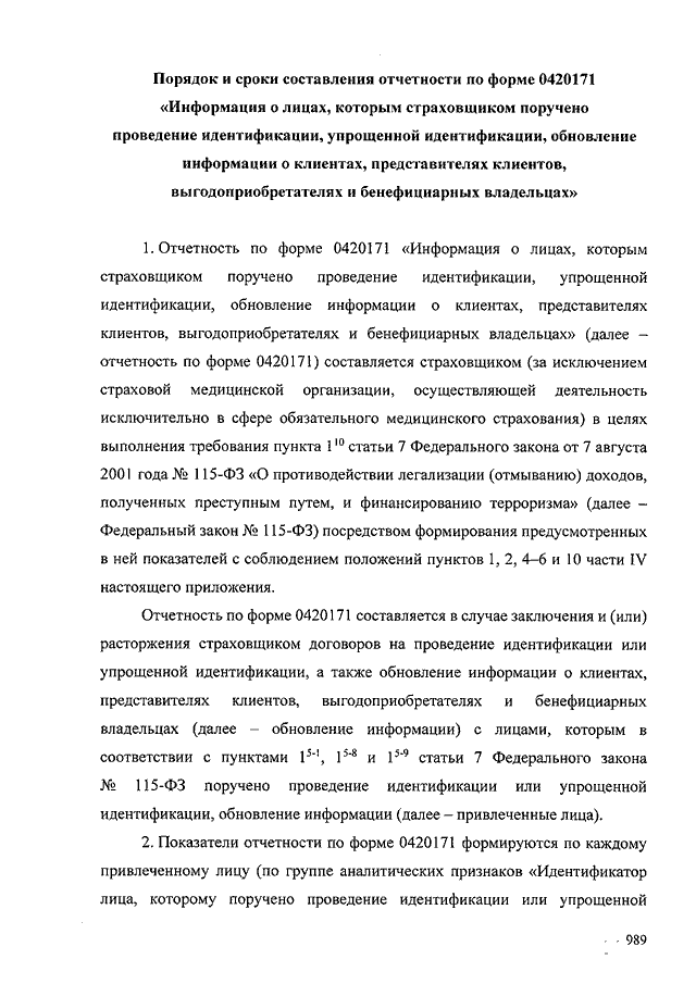 "О ФОРМАХ, СРОКАХ И ПОРЯДКЕ СОСТАВЛЕНИЯ И ПРЕДСТАВЛЕНИЯ В БАНК РОССИИ ОТЧЕТНОСТИ СТРАХОВЩИКОВ, О ПОРЯДКЕ СООБЩЕНИЯ СТРАХОВЩИКАМИ БАНКУ РОССИИ ИНФОРМАЦИИ О ЛИЦАХ, КОТОРЫМ ПОРУЧЕНО ПРОВЕДЕНИЕ ИДЕНТИФИКАЦИИ, УПРОЩЕННОЙ ИДЕНТИФИКАЦИИ, ОБНОВЛЕНИЕ ИНФОРМАЦИИ О КЛИЕНТАХ, ПРЕДСТАВИТЕЛЯХ КЛИЕНТОВ, ВЫГОДОПРИОБРЕТАТЕЛЯХ И БЕНЕФИЦИАРНЫХ ВЛАДЕЛЬЦАХ, О ПОРЯДКЕ СООБЩЕНИЯ СТРАХОВЩИКАМИ В БАНК РОССИИ СВЕДЕНИЙ ОБ ОПУБЛИКОВАНИИ ГОДОВОЙ БУХГАЛТЕРСКОЙ (ФИНАНСОВОЙ) ОТЧЕТНОСТИ СТРАХОВЩИКА, А ТАКЖЕ О ПОРЯДКЕ И СРОКАХ ПРЕДСТАВЛЕНИЯ СТРАХОВЩИКАМИ В БАНК РОССИИ СВЕДЕНИЙ И ДОКУМЕНТОВ В ОТНОШЕНИИ ИХ ФИЛИАЛОВ, ПРЕДСТАВИТЕЛЬСТВ И ИНЫХ ОБОСОБЛЕННЫХ ПОДРАЗДЕЛЕНИЙ"