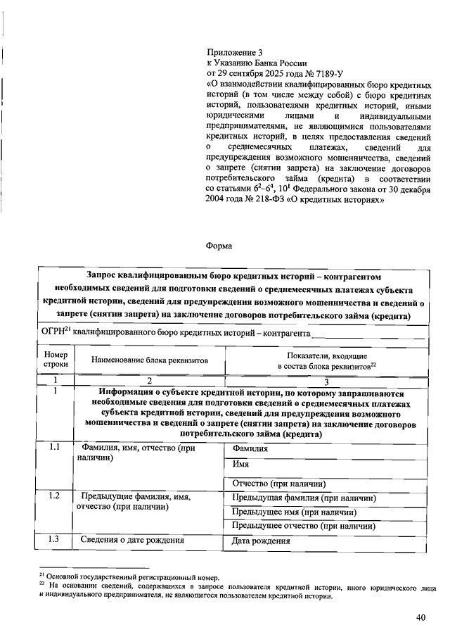 "О ВЗАИМОДЕЙСТВИИ КВАЛИФИЦИРОВАННЫХ БЮРО КРЕДИТНЫХ ИСТОРИЙ (В ТОМ ЧИСЛЕ МЕЖДУ СОБОЙ) С БЮРО КРЕДИТНЫХ ИСТОРИЙ, ПОЛЬЗОВАТЕЛЯМИ КРЕДИТНЫХ ИСТОРИЙ, ИНЫМИ ЮРИДИЧЕСКИМИ ЛИЦАМИ И ИНДИВИДУАЛЬНЫМИ ПРЕДПРИНИМАТЕЛЯМИ, НЕ ЯВЛЯЮЩИМИСЯ ПОЛЬЗОВАТЕЛЯМИ КРЕДИТНЫХ ИСТОРИЙ, В ЦЕЛЯХ ПРЕДОСТАВЛЕНИЯ СВЕДЕНИЙ О СРЕДНЕМЕСЯЧНЫХ ПЛАТЕЖАХ, СВЕДЕНИЙ ДЛЯ ПРЕДУПРЕЖДЕНИЯ ВОЗМОЖНОГО МОШЕННИЧЕСТВА, СВЕДЕНИЙ О ЗАПРЕТЕ (СНЯТИИ ЗАПРЕТА) НА ЗАКЛЮЧЕНИЕ ДОГОВОРОВ ПОТРЕБИТЕЛЬСКОГО ЗАЙМА (КРЕДИТА) В СООТВЕТСТВИИ СО СТАТЬЯМИ 6.2 - 6.4, 10.1 ФЕДЕРАЛЬНОГО ЗАКОНА ОТ 30 ДЕКАБРЯ 2004 Г. N 218-ФЗ "О КРЕДИТНЫХ ИСТОРИЯХ"