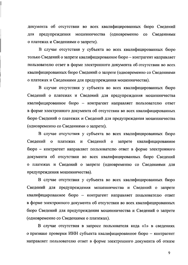 "О ВЗАИМОДЕЙСТВИИ КВАЛИФИЦИРОВАННЫХ БЮРО КРЕДИТНЫХ ИСТОРИЙ (В ТОМ ЧИСЛЕ МЕЖДУ СОБОЙ) С БЮРО КРЕДИТНЫХ ИСТОРИЙ, ПОЛЬЗОВАТЕЛЯМИ КРЕДИТНЫХ ИСТОРИЙ, ИНЫМИ ЮРИДИЧЕСКИМИ ЛИЦАМИ И ИНДИВИДУАЛЬНЫМИ ПРЕДПРИНИМАТЕЛЯМИ, НЕ ЯВЛЯЮЩИМИСЯ ПОЛЬЗОВАТЕЛЯМИ КРЕДИТНЫХ ИСТОРИЙ, В ЦЕЛЯХ ПРЕДОСТАВЛЕНИЯ СВЕДЕНИЙ О СРЕДНЕМЕСЯЧНЫХ ПЛАТЕЖАХ, СВЕДЕНИЙ ДЛЯ ПРЕДУПРЕЖДЕНИЯ ВОЗМОЖНОГО МОШЕННИЧЕСТВА, СВЕДЕНИЙ О ЗАПРЕТЕ (СНЯТИИ ЗАПРЕТА) НА ЗАКЛЮЧЕНИЕ ДОГОВОРОВ ПОТРЕБИТЕЛЬСКОГО ЗАЙМА (КРЕДИТА) В СООТВЕТСТВИИ СО СТАТЬЯМИ 6.2 - 6.4, 10.1 ФЕДЕРАЛЬНОГО ЗАКОНА ОТ 30 ДЕКАБРЯ 2004 Г. N 218-ФЗ "О КРЕДИТНЫХ ИСТОРИЯХ"