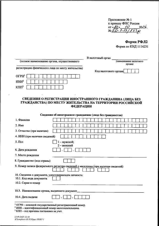 ПРИКАЗ ФНС РФ от 02.10.2025 N ЕД-7-14/853@