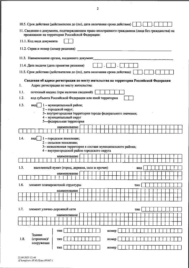 "ОБ УТВЕРЖДЕНИИ ФОРМЫ, ПОРЯДКА ЕЕ ЗАПОЛНЕНИЯ И ФОРМАТА ПРЕДСТАВЛЕНИЯ СВЕДЕНИЙ О РЕГИСТРАЦИИ ИНОСТРАННОГО ГРАЖДАНИНА (ЛИЦА БЕЗ ГРАЖДАНСТВА) ПО МЕСТУ ЖИТЕЛЬСТВА НА ТЕРРИТОРИИ РОССИЙСКОЙ ФЕДЕРАЦИИ В ЭЛЕКТРОННОЙ ФОРМЕ"