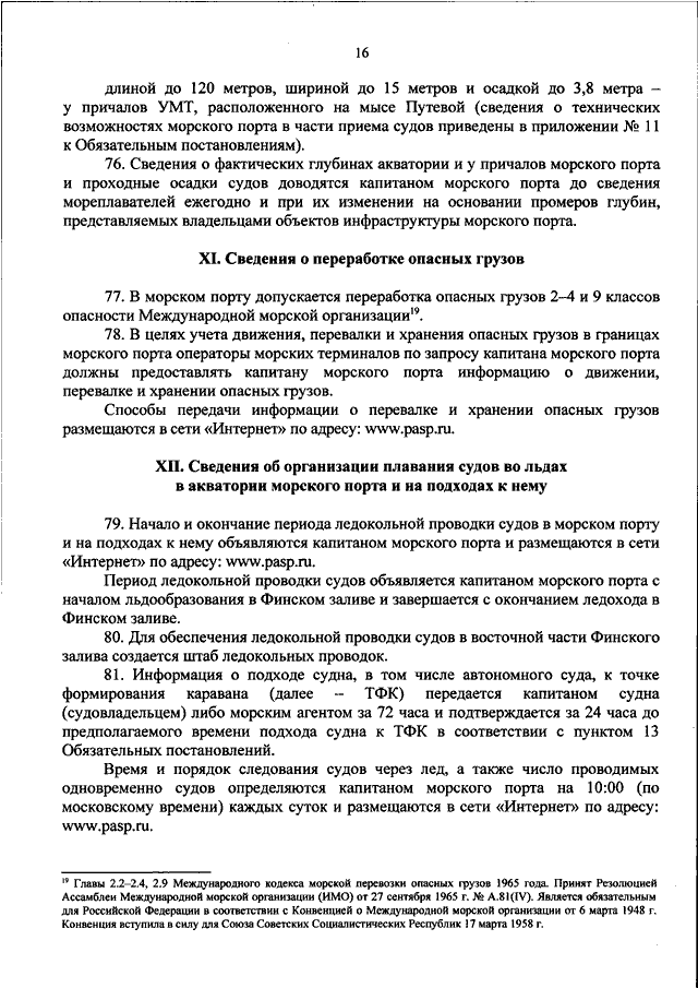 "ОБ УТВЕРЖДЕНИИ ОБЯЗАТЕЛЬНЫХ ПОСТАНОВЛЕНИЙ В МОРСКОМ ПОРТУ ВЫСОЦК"
