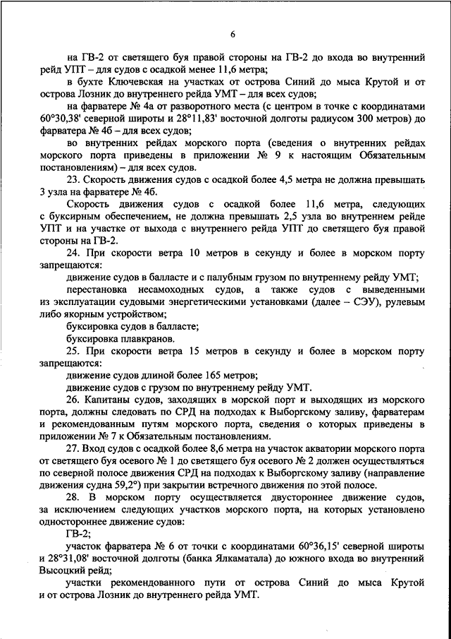 "ОБ УТВЕРЖДЕНИИ ОБЯЗАТЕЛЬНЫХ ПОСТАНОВЛЕНИЙ В МОРСКОМ ПОРТУ ВЫСОЦК"