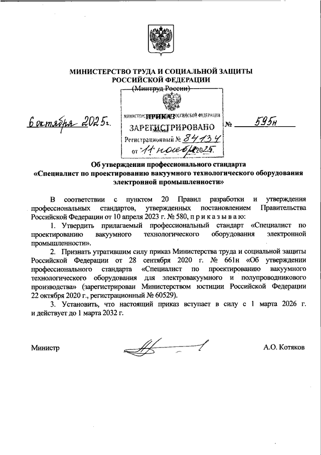 ПРИКАЗ Минтруда РФ от 06.10.2025 N 595н