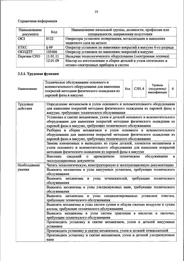 "ОБ УТВЕРЖДЕНИИ ПРОФЕССИОНАЛЬНОГО СТАНДАРТА "ОПЕРАТОР УСТАНОВОК ПО НАНЕСЕНИЮ ПОКРЫТИЙ В ВАКУУМЕ"
