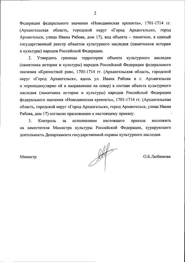 "О ВКЛЮЧЕНИИ ВЫЯВЛЕННОГО ОБЪЕКТА КУЛЬТУРНОГО НАСЛЕДИЯ (ПАМЯТНИКА ИСТОРИИ И КУЛЬТУРЫ) НАРОДОВ РОССИЙСКОЙ ФЕДЕРАЦИИ "КРЕПОСТНОЙ РОВ", 1705 - 1714 ГГ. (АРХАНГЕЛЬСКАЯ ОБЛАСТЬ, ГОРОДСКОЙ ОКРУГ "ГОРОД АРХАНГЕЛЬСК", ВДОЛЬ УЛ. ИВАНА РЯБОВА В Г. АРХАНГЕЛЬСКЕ И ПЕРПЕНДИКУЛЯРНО ЕЙ В НАПРАВЛЕНИИ НА СЕВЕР) В ЕДИНЫЙ ГОСУДАРСТВЕННЫЙ РЕЕСТР ОБЪЕКТОВ КУЛЬТУРНОГО НАСЛЕДИЯ (ПАМЯТНИКОВ ИСТОРИИ И КУЛЬТУРЫ) НАРОДОВ РОССИЙСКОЙ ФЕДЕРАЦИИ В СОСТАВЕ ОБЪЕКТА КУЛЬТУРНОГО НАСЛЕДИЯ (ПАМЯТНИКА ИСТОРИИ И КУЛЬТУРЫ) НАРОДОВ РОССИЙСКОЙ ФЕДЕРАЦИИ ФЕДЕРАЛЬНОГО ЗНАЧЕНИЯ "НОВОДВИНСКАЯ КРЕПОСТЬ", 1701 - 1714 ГГ. (АРХАНГЕЛЬСКАЯ ОБЛАСТЬ, ГОРОДСКОЙ ОКРУГ "ГОРОД АРХАНГЕЛЬСК", ГОРОД АРХАНГЕЛЬСК, УЛИЦА ИВАНА РЯБОВА, ДОМ 17) В КАЧЕСТВЕ ОБЪЕКТА КУЛЬТУРНОГО НАСЛЕДИЯ (ПАМЯТНИКА ИСТОРИИ И КУЛЬТУРЫ) НАРОДОВ РОССИЙСКОЙ ФЕДЕРАЦИИ ФЕДЕРАЛЬНОГО ЗНАЧЕНИЯ И УТВЕРЖДЕНИИ ГРАНИЦ ЕГО ТЕРРИТОРИИ"