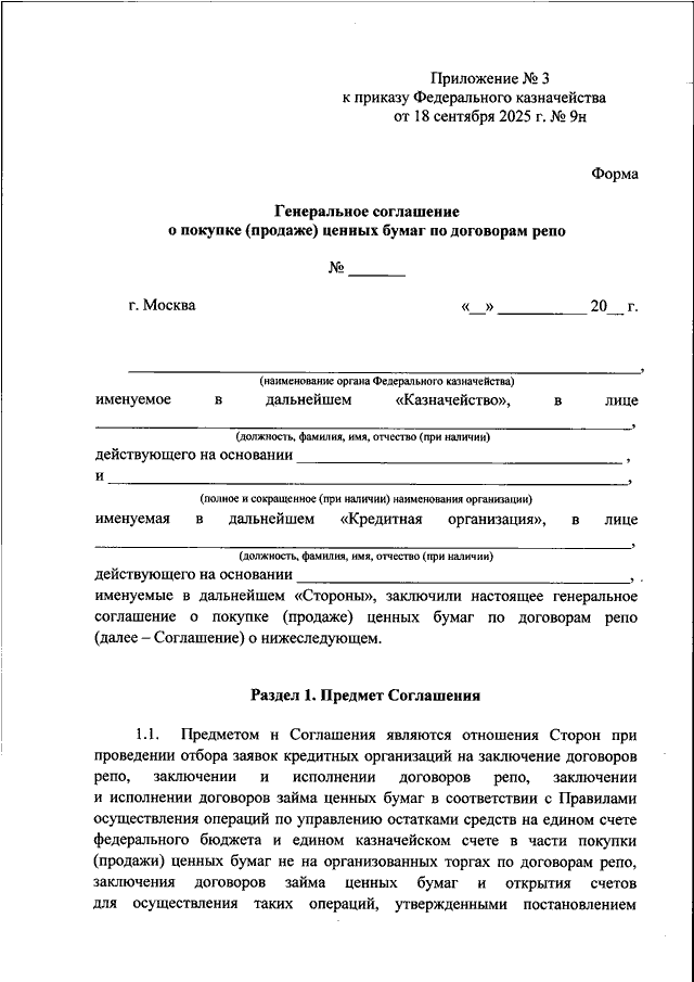 ПРИКАЗ Федерального казначейства от 18.09.2025 N 9н