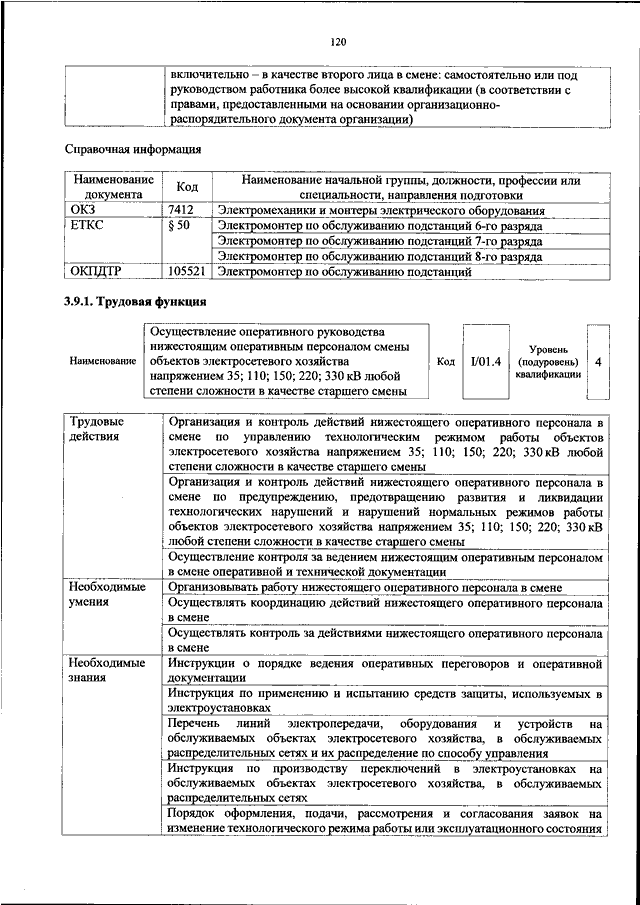 "ОБ УТВЕРЖДЕНИИ ПРОФЕССИОНАЛЬНОГО СТАНДАРТА "РАБОТНИК ПО ОПЕРАТИВНО - ТЕХНОЛОГИЧЕСКОМУ УПРАВЛЕНИЮ В ЭЛЕКТРИЧЕСКИХ СЕТЯХ 35 КВ И ВЫШЕ"