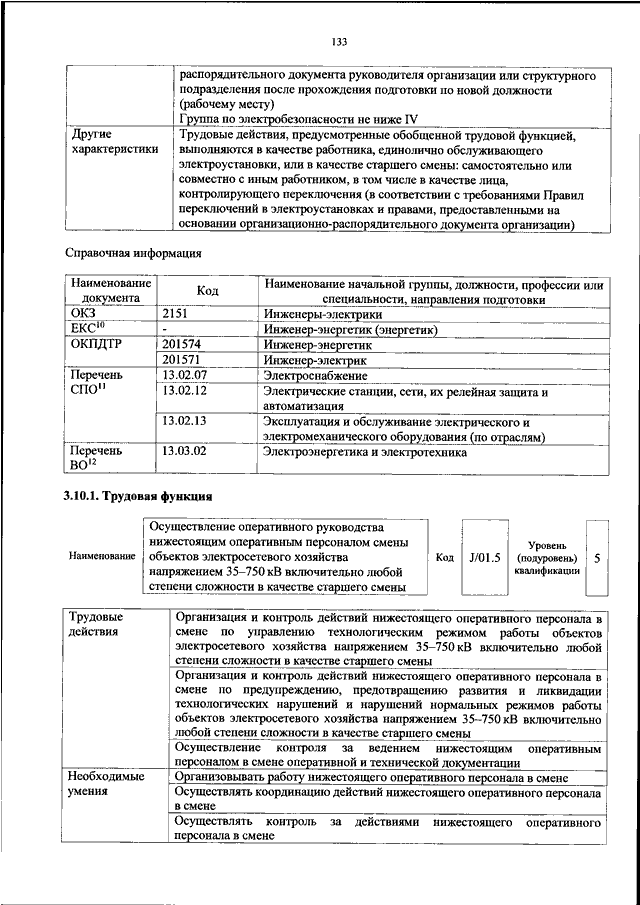 "ОБ УТВЕРЖДЕНИИ ПРОФЕССИОНАЛЬНОГО СТАНДАРТА "РАБОТНИК ПО ОПЕРАТИВНО - ТЕХНОЛОГИЧЕСКОМУ УПРАВЛЕНИЮ В ЭЛЕКТРИЧЕСКИХ СЕТЯХ 35 КВ И ВЫШЕ"