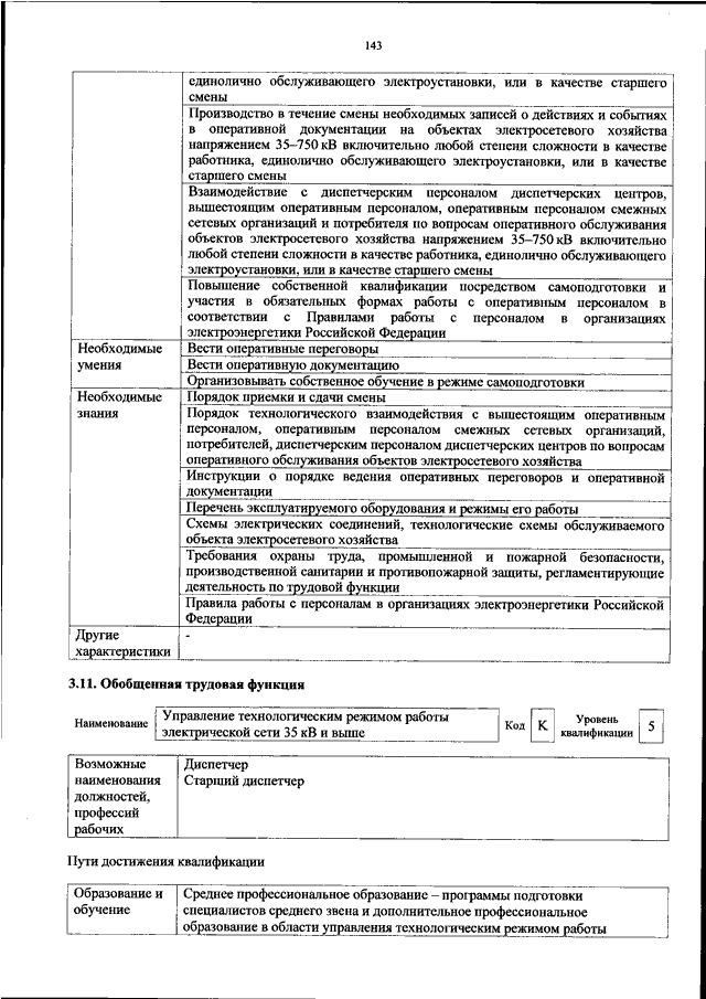 "ОБ УТВЕРЖДЕНИИ ПРОФЕССИОНАЛЬНОГО СТАНДАРТА "РАБОТНИК ПО ОПЕРАТИВНО - ТЕХНОЛОГИЧЕСКОМУ УПРАВЛЕНИЮ В ЭЛЕКТРИЧЕСКИХ СЕТЯХ 35 КВ И ВЫШЕ"