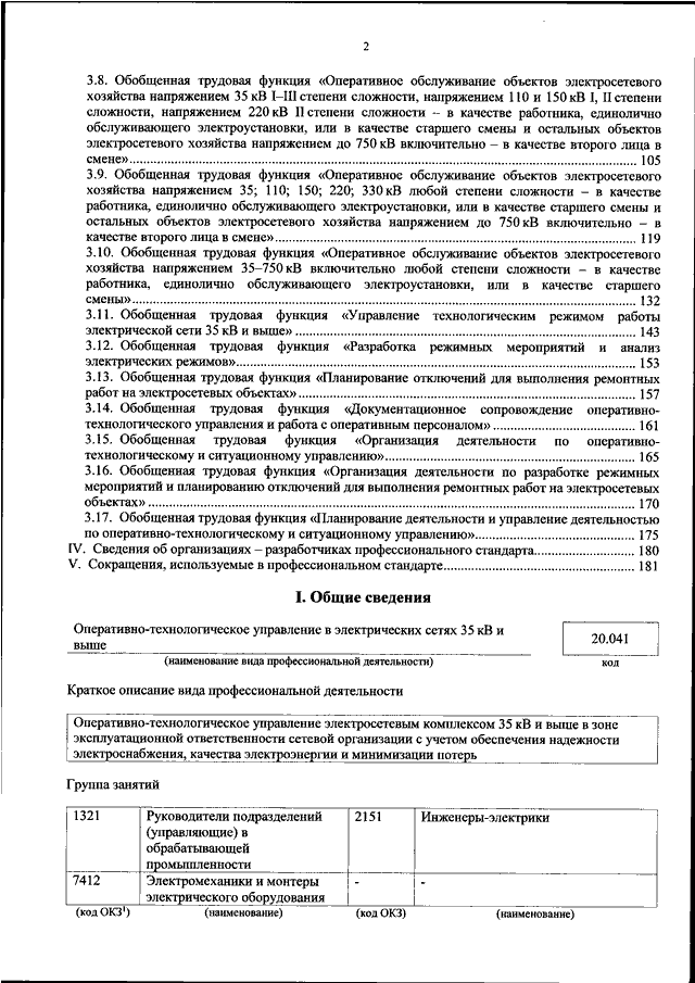 "ОБ УТВЕРЖДЕНИИ ПРОФЕССИОНАЛЬНОГО СТАНДАРТА "РАБОТНИК ПО ОПЕРАТИВНО - ТЕХНОЛОГИЧЕСКОМУ УПРАВЛЕНИЮ В ЭЛЕКТРИЧЕСКИХ СЕТЯХ 35 КВ И ВЫШЕ"