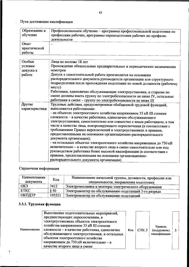 "ОБ УТВЕРЖДЕНИИ ПРОФЕССИОНАЛЬНОГО СТАНДАРТА "РАБОТНИК ПО ОПЕРАТИВНО - ТЕХНОЛОГИЧЕСКОМУ УПРАВЛЕНИЮ В ЭЛЕКТРИЧЕСКИХ СЕТЯХ 35 КВ И ВЫШЕ"