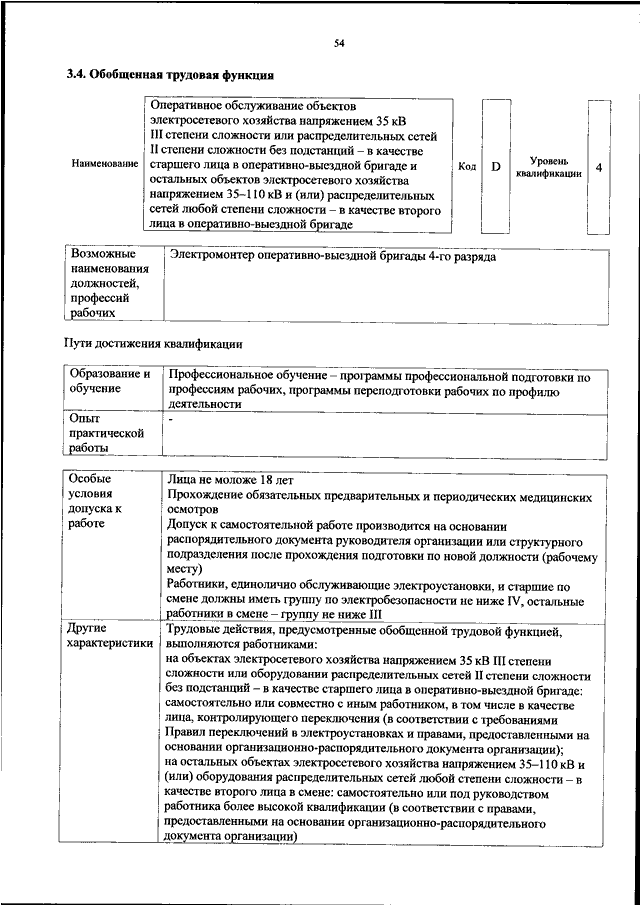"ОБ УТВЕРЖДЕНИИ ПРОФЕССИОНАЛЬНОГО СТАНДАРТА "РАБОТНИК ПО ОПЕРАТИВНО - ТЕХНОЛОГИЧЕСКОМУ УПРАВЛЕНИЮ В ЭЛЕКТРИЧЕСКИХ СЕТЯХ 35 КВ И ВЫШЕ"