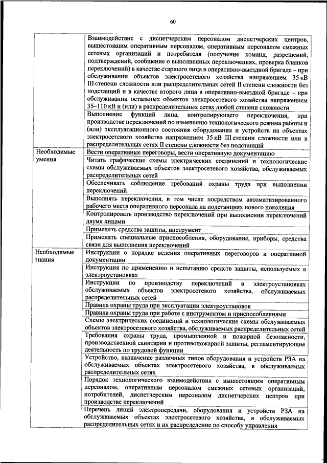 "ОБ УТВЕРЖДЕНИИ ПРОФЕССИОНАЛЬНОГО СТАНДАРТА "РАБОТНИК ПО ОПЕРАТИВНО - ТЕХНОЛОГИЧЕСКОМУ УПРАВЛЕНИЮ В ЭЛЕКТРИЧЕСКИХ СЕТЯХ 35 КВ И ВЫШЕ"