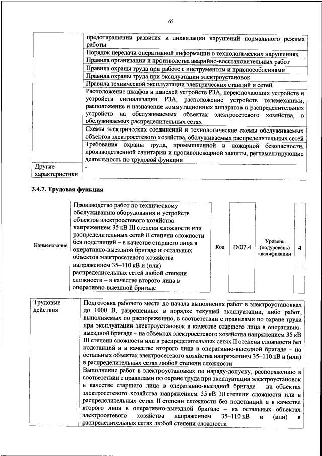 "ОБ УТВЕРЖДЕНИИ ПРОФЕССИОНАЛЬНОГО СТАНДАРТА "РАБОТНИК ПО ОПЕРАТИВНО - ТЕХНОЛОГИЧЕСКОМУ УПРАВЛЕНИЮ В ЭЛЕКТРИЧЕСКИХ СЕТЯХ 35 КВ И ВЫШЕ"