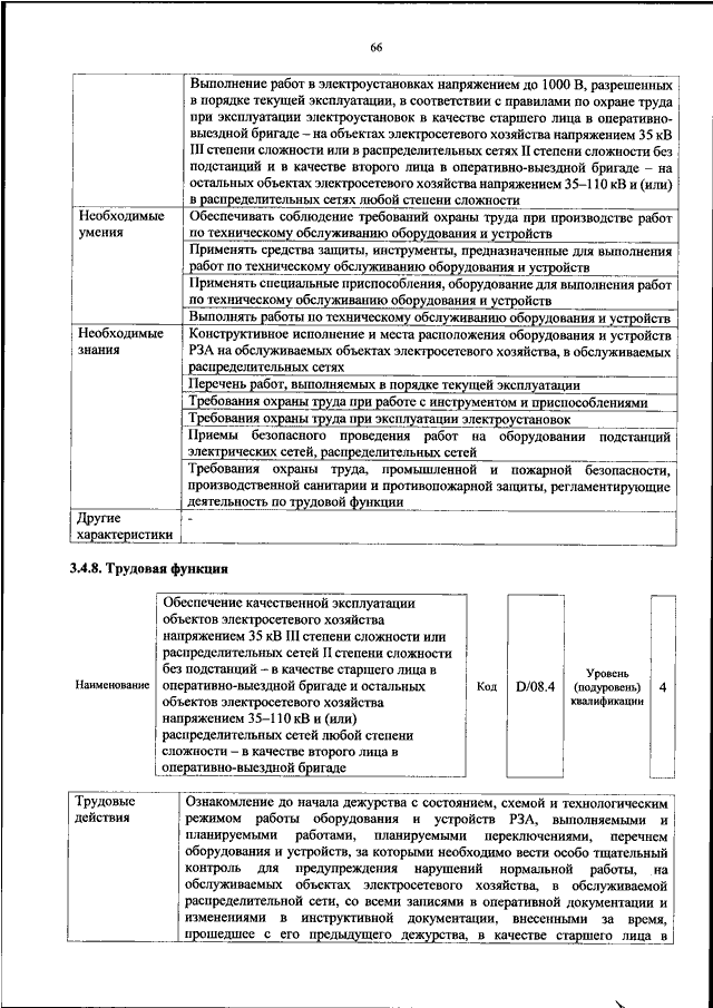 "ОБ УТВЕРЖДЕНИИ ПРОФЕССИОНАЛЬНОГО СТАНДАРТА "РАБОТНИК ПО ОПЕРАТИВНО - ТЕХНОЛОГИЧЕСКОМУ УПРАВЛЕНИЮ В ЭЛЕКТРИЧЕСКИХ СЕТЯХ 35 КВ И ВЫШЕ"