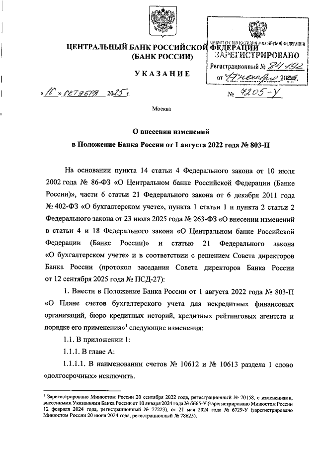 УКАЗАНИЕ ЦБ РФ от 10.10.2025 N 7205-У