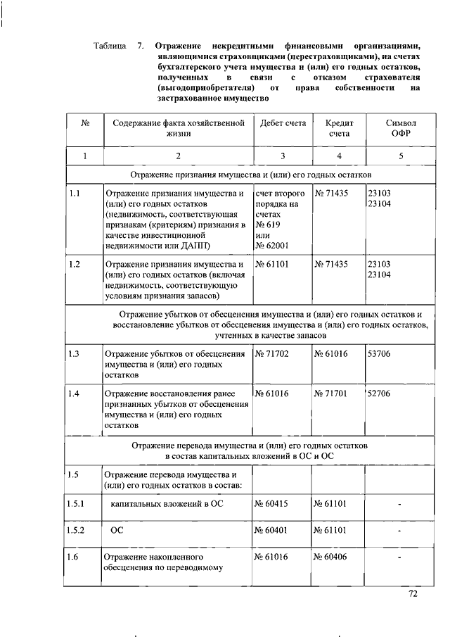 "О ПОРЯДКЕ ОТРАЖЕНИЯ НА СЧЕТАХ БУХГАЛТЕРСКОГО УЧЕТА ОСНОВНЫХ СРЕДСТВ, ИНВЕСТИЦИОННОЙ НЕДВИЖИМОСТИ, НЕМАТЕРИАЛЬНЫХ АКТИВОВ, ДОЛГОСРОЧНЫХ АКТИВОВ, ПРЕДНАЗНАЧЕННЫХ ДЛЯ ПРОДАЖИ, ЗАПАСОВ, СРЕДСТВ ТРУДА И ПРЕДМЕТОВ ТРУДА, ПОЛУЧЕННЫХ ПО ДОГОВОРАМ ОТСТУПНОГО ЗАЛОГА, НАЗНАЧЕНИЕ КОТОРЫХ НЕ ОПРЕДЕЛЕНО, ИМУЩЕСТВА И (ИЛИ) ЕГО ГОДНЫХ ОСТАТКОВ, ПОЛУЧЕННЫХ В СВЯЗИ С ОТКАЗОМ СТРАХОВАТЕЛЯ (ВЫГОДОПРИОБРЕТАТЕЛЯ) ОТ ПРАВА СОБСТВЕННОСТИ НА ЗАСТРАХОВАННОЕ ИМУЩЕСТВО, НЕКРЕДИТНЫМИ ФИНАНСОВЫМИ ОРГАНИЗАЦИЯМИ, БЮРО КРЕДИТНЫХ ИСТОРИЙ, КРЕДИТНЫМИ РЕЙТИНГОВЫМИ АГЕНТСТВАМИ"